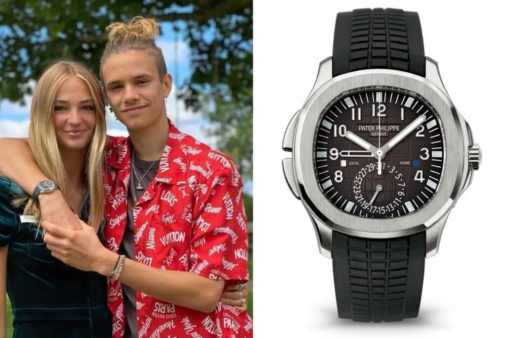 El buen gusto de David y Victoria Beckham por los relojes se ha transmitido claramente a sus hijos. Su hijo mayor, Brooklyn Beckham, ha sido visto a menudo luciendo el Patek Philippe Nautilus 5711/1R-001 de oro rosa con esfera de rayos de sol marrón. El Nautilus Ref. 5711/1R-001 ha sido descatalogado por Patek Philippe, pero se puede conseguir en el mercado secundario por unos 200.000 dólares.
