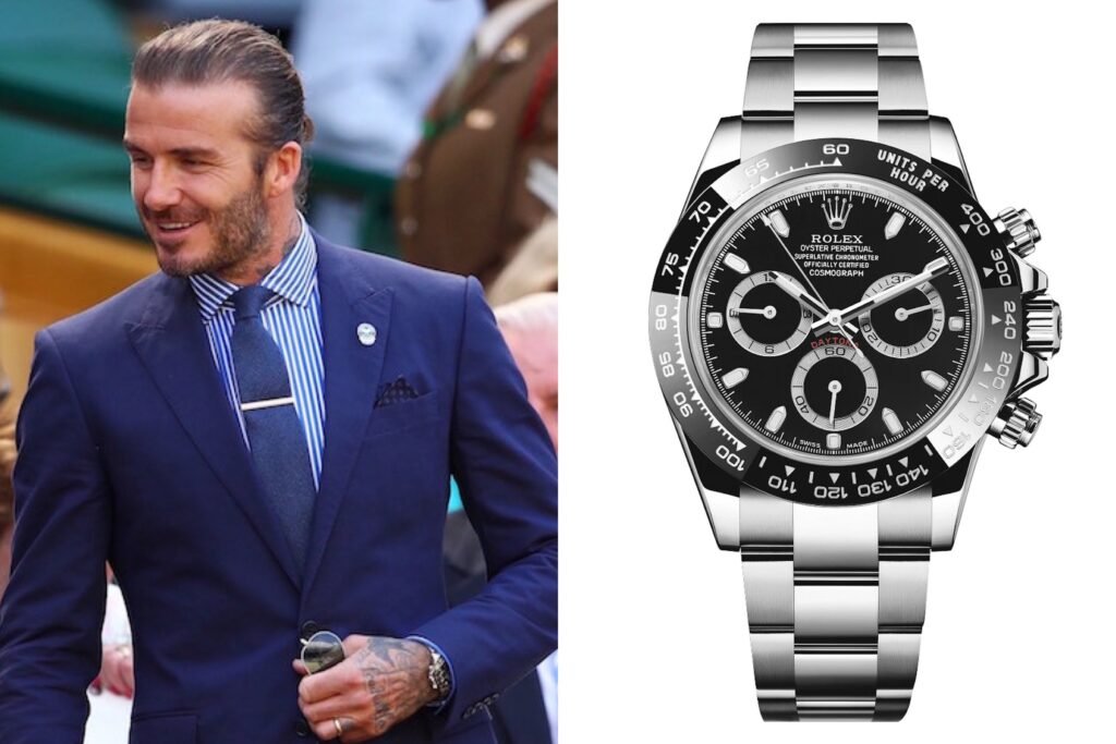 Quizás el Rolex más buscado del mercado sea el Daytona de acero inoxidable. El Rolex Daytona Ref. 116500 cuenta con un brazalete Oyster de acero inoxidable, bisel de cerámica y pulsadores de cronógrafo atornillados. Aunque el Daytona se ofrece con esfera blanca y negra, Beckham ha sido visto con el modelo de esfera negra. El Rolex Daytona 116500 se vende por 14.800 dólares.