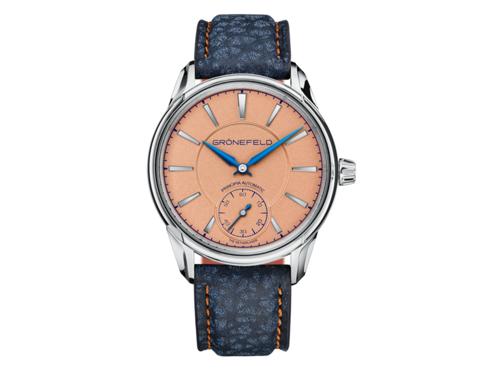 El 1941 Principia Automatic Salmon Dial es probablemente uno de los mejores ejemplos de reloj de lujo discreto, una de las características más atractivas de la relojería independiente. El diseño no podría ser más tradicional desde un punto de vista estético o proporcional, e irradia un aura refinada de la que es difícil escapar. La esfera salmón es sublime y contrasta con las llamativas agujas azules. El movimiento también es una belleza, con sus contrastes de texturas y acabados que hacen que uno quiera llevar el reloj con la caja hacia arriba todo el tiempo. Este hermoso reloj cuesta a partir de 36.900 o aproximadamente 39.000 dólares estadounidenses para la versión de acero.
