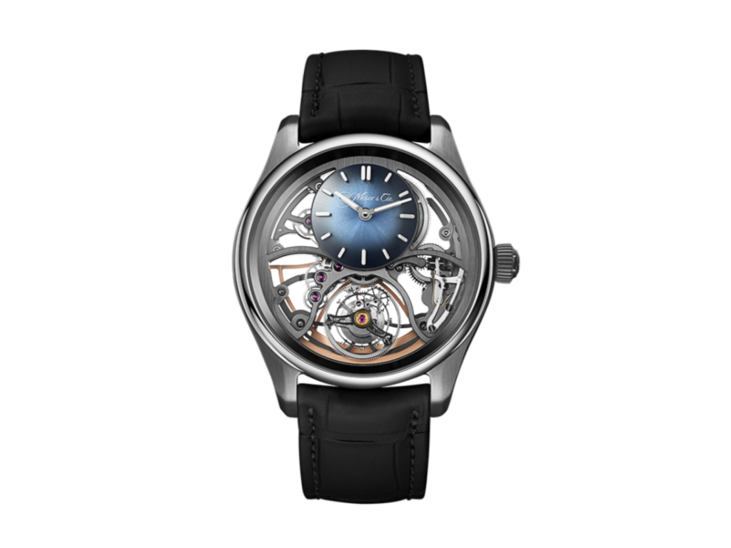 El Pioneer Cylindrical Tourbillion Skeleton es una obra de arte tridimensional. Mostrando lo mejor de la capacidad tecnológica de Möser, expone los intrincados componentes, casi vivos, que dan vida a esta «escultura cinética». El tourbillón volante está en primer plano y atrae toda la atención, ya que parece colgar de hilos en la posición de las 6 del movimiento esqueletado. En la posición de las 12 en punto encontramos la indicación de la hora, una esfera abovedada con índices en relieve que contrastan sorprendentemente con los tonos oscuros de la esfera de esmalte azul. Este reloj se vende por la friolera de 79.000CHF, o aproximadamente 91.000 USD..