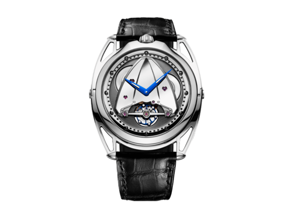 El Deep-Space Tourbillion es una extraordinaria interpretación de la complicación clásica. El mecanismo parece flotar en otra dimensión, suspendido entre capas multidimensionales de zafiro. Semejante a un módulo de una estación espacial, este escape capta realmente la atención. La esfera anular que lo envuelve es polifacética y juega con nuestra percepción del tiempo, sobre todo por las agujas poco convencionales que orbitan alrededor del tourbillion. Esta pieza futurista es una fantástica muestra de relojería poco convencional y está disponible por una suma no revelada.