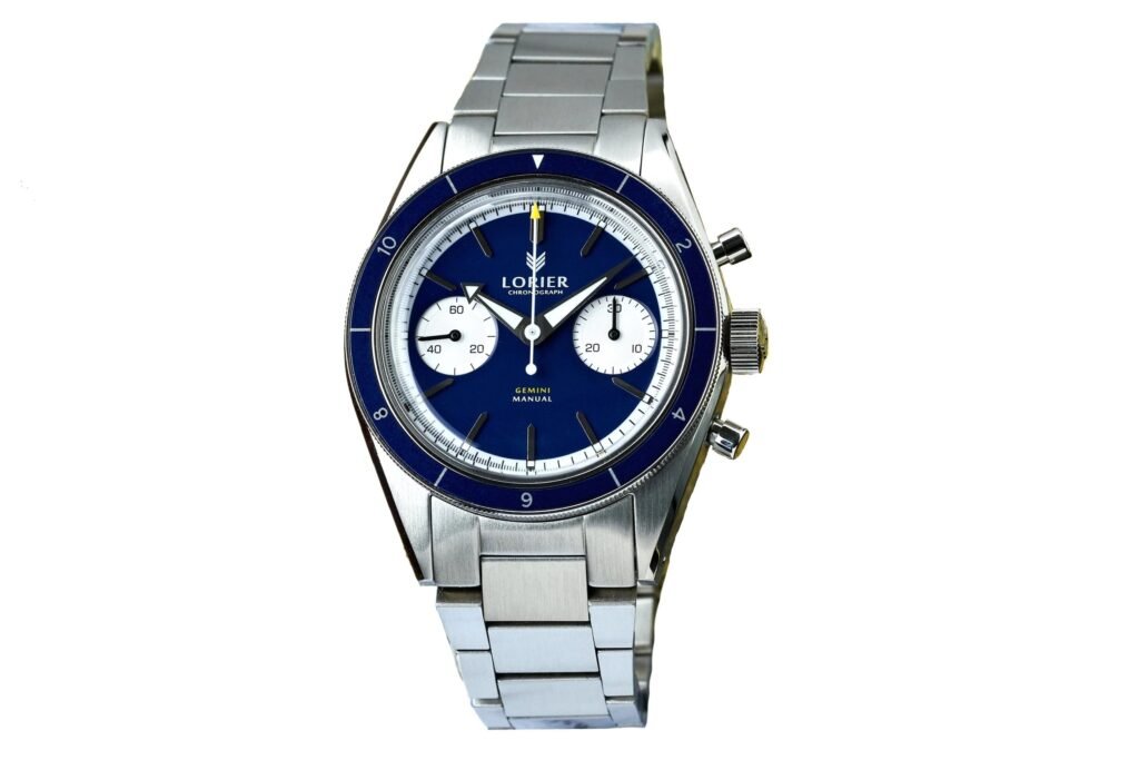 Lorier, una micromarca con sede en Nueva York, ha causado sensación desde su fundación produciendo relojes que se apoyan en gran medida en la estética vintage. El Lorier Gemini continúa esta tradición. El Gemini mantiene la forma de la caja y el diseño del brazalete del Neptune Diver, pero incorpora un cronógrafo manual de doble esfera. El reloj nos recuerda bastante al Omega Speedmaster 57 Chronograph. Y eso es bueno. A casi 1/20 del precio del Speedmaster (el Gemini se vende por 499 USD), es una gran opción económica para alguien que quiera un cronógrafo de estilo vintage a un precio extremadamente asequible. ).