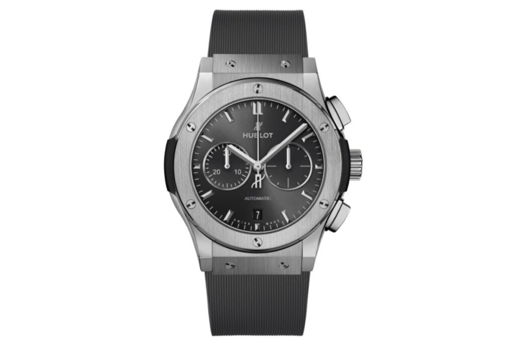 Hublot a menudo recibe una mala reputación en la comunidad de coleccionistas de relojes, y a veces de forma merecida. Sin embargo, somos grandes fans del Hublot Classic Fusion Cronógrafo en titanio. El Classic Fusion podría ser nuestro modelo favorito que Hublot produce. A diferencia de muchos otros relojes Hublot, no es de gran tamaño o particularmente ruidoso. Al mismo tiempo, sigue pareciendo un Hublot. Sí, a menudo se acusa al Classic Fusion y al Big Bang de ser imitaciones del Royal Oak. Pero hay suficientes diferencias que permiten al Classic Fusion valerse por sí mismo.