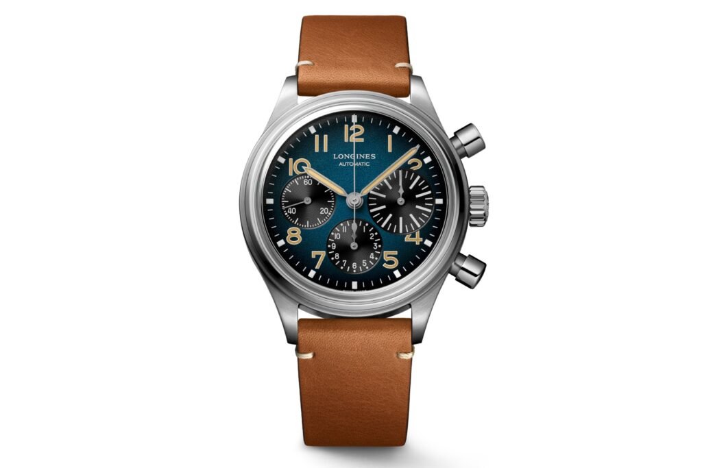 Lo segundo es lo exclusivos que son sus Cronógrafos Piloto. El 1940 Heritage Chronograph Telemeter es uno de los más bonitos que fabrican y su valor es indiscutible. En primer lugar, el reloj funciona con dos zonas horarias separadas. La «hora principal» y la hora secundaria a las 3 en punto. Esto se denomina función de hora dual y registra tanto las horas como los minutos de dos zonas completamente separadas. En segundo lugar, el movimiento cuenta con una función flyback, que permite poner a cero el cronógrafo sin necesidad de pararlo y arrancarlo, una complicación muy útil. La esfera vintage es también una de las más singulares que hemos visto.