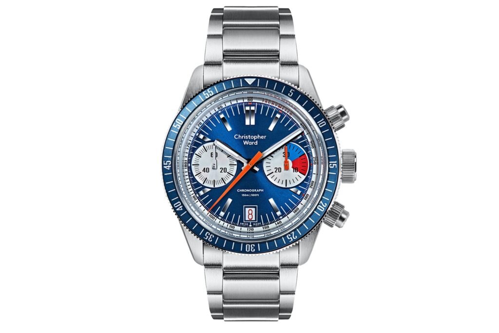 Puede que el Christopher Ward C65 Chronograph reciba el apodo de «Wild Thing» porque la marca intentó uno de sus diseños más atrevidos con este reloj. Múltiples tonos de azul, blanco, rojo y naranja adornan la esfera del cronógrafo C65, con el azul sunburst a la cabeza. A ello se suma un bisel azul metálico que incluye curiosas marcas de graduación en cada minuto a lo largo de todo el bisel. Está claro que este reloj tiene muchas cosas, pero por eso nos gusta. Con tantas marcas que simplifican sus ofertas, especialmente en la categoría de inspiración vintage, es agradable ver una marca que va en la dirección opuesta. De hecho, el C65 Chronograph nos recuerda a los cronógrafos de carreras como el Tag Heuer Monaco (aparte de la forma de la caja, por supuesto), y a 1.740 USD< por un cronógrafo automático de fabricación suiza, es una buena oferta..