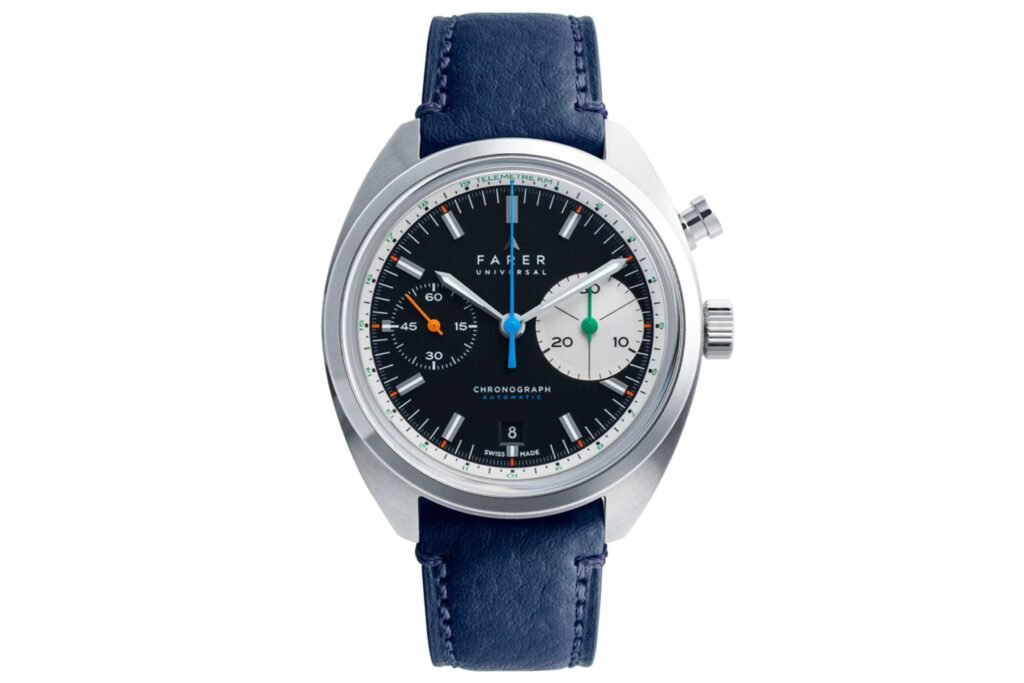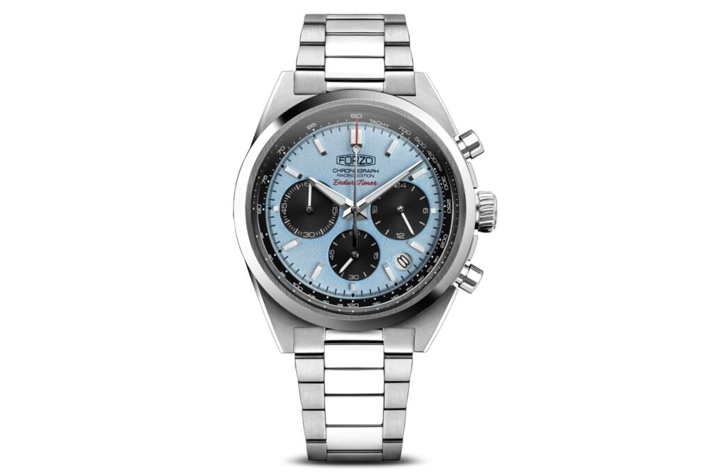 Si busca un cronógrafo atractivo inspirado en las carreras por menos de 600 USD, eche un vistazo al Forzo Enduratimer Gen 2 Chronograph. Se ofrece en una variedad de colores de esfera (incluyendo nuestro favorito, azul bebé). El Enduratimer funciona con el popular movimiento de cuarzo mecánico de Seiko y tiene unas atractivas subesferas negras que le dan un aire de esfera de panda. La esfera parece tener una textura arenada, lo que añade otra característica interesante. El Forzo Enduratimer Gen 2 Chronograph se vende por 714 USD..