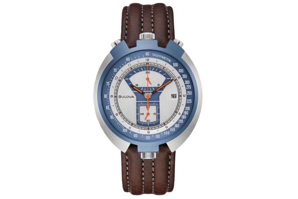 El Bulova «Parking Meter» parece, bueno, un parquímetro y nos encanta. El Parking Meter se lanzó originalmente en 1973 (la referencia original era 1008-6W) y los coleccionistas empezaron a llamarlo cariñosamente el Parquímetro. Esto se debe a que las subesferas verticales asimétricas y la corona y los pulsadores en forma de cabeza de toro hacían que el reloj se pareciera a un parquímetro. La reedición de 2022 del Parking Meter se mantiene fiel al diseño original, pero incluye dos coronas, una a las 12 y otra a las 6. La corona a las 12 se utiliza para ajustar la hora, mientras que la corona a las 6 controla el bisel bidireccional. El reloj funciona con un movimiento de cuarzo, pero eso no nos importa, ya que se vende por un precio muy asequible 595 USD.