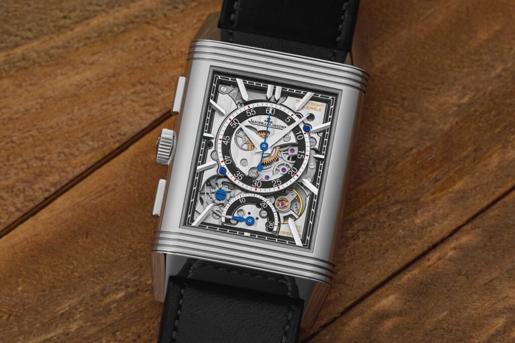 JLC ha demostrado que puede hacer casi cualquier complicación en su colección Reverso, uno de sus estilos más icónicos. Este cronógrafo Reverso es elegante por delante y deportivo por detrás. La esfera frontal es un simple rayo de sol azul que muestra la hora. Cuando se invierte hacia la parte posterior se obtiene un cronógrafo retrógrado abierto. El lado invertido también muestra la hora junto con un segundero cronógrafo y un contador de 30 minutos. Nos encanta que JLC haya optado por una pantalla esqueleto que muestra el movimiento del cronógrafo y sus complejidades. Este Reverso es un homenaje a la herencia de JLC y a su éxito inicial con el Reverso Chronographe de 1996. Ahora, ha sido recreado para los tiempos actuales. El Reverso Tribute Chronograph tiene un precio de 25.000 dólares.