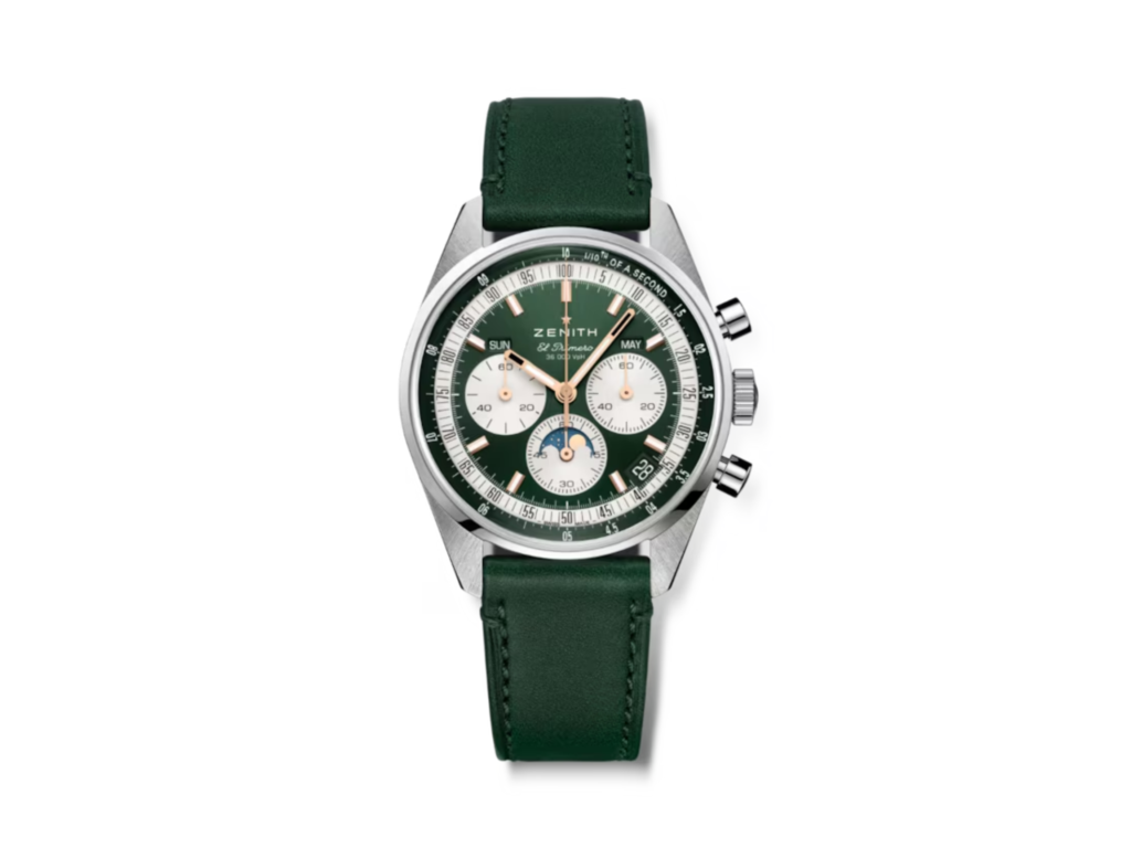 Aunque Zenith ya está en nuestra lista original con su cronógrafo El Primero, también teníamos que incluir el Chronomaster Original Triple Calendar. Digamos que Zenith sabe lo que hace cuando se trata de relojes, especialmente cronógrafos. Este es uno de los últimos lanzamientos de Zentih de 2024. La complicación El Primero es uno de los movimientos más queridos en el mundo de la relojería y cuando se produjo por primera vez se pretendía que tuviera un triple calendario. Se hicieron prototipos, pero nunca se llegó a producir nada con El Primero y una complicación de triple calendario, hasta ahora. Esta pieza está equipada con un calendario que muestra el día, el mes, el año y la fase lunar. Es hermoso en todos los sentidos y añade más a un cronógrafo deportivo. Se puede llevar elegantemente o para ir a la oficina.